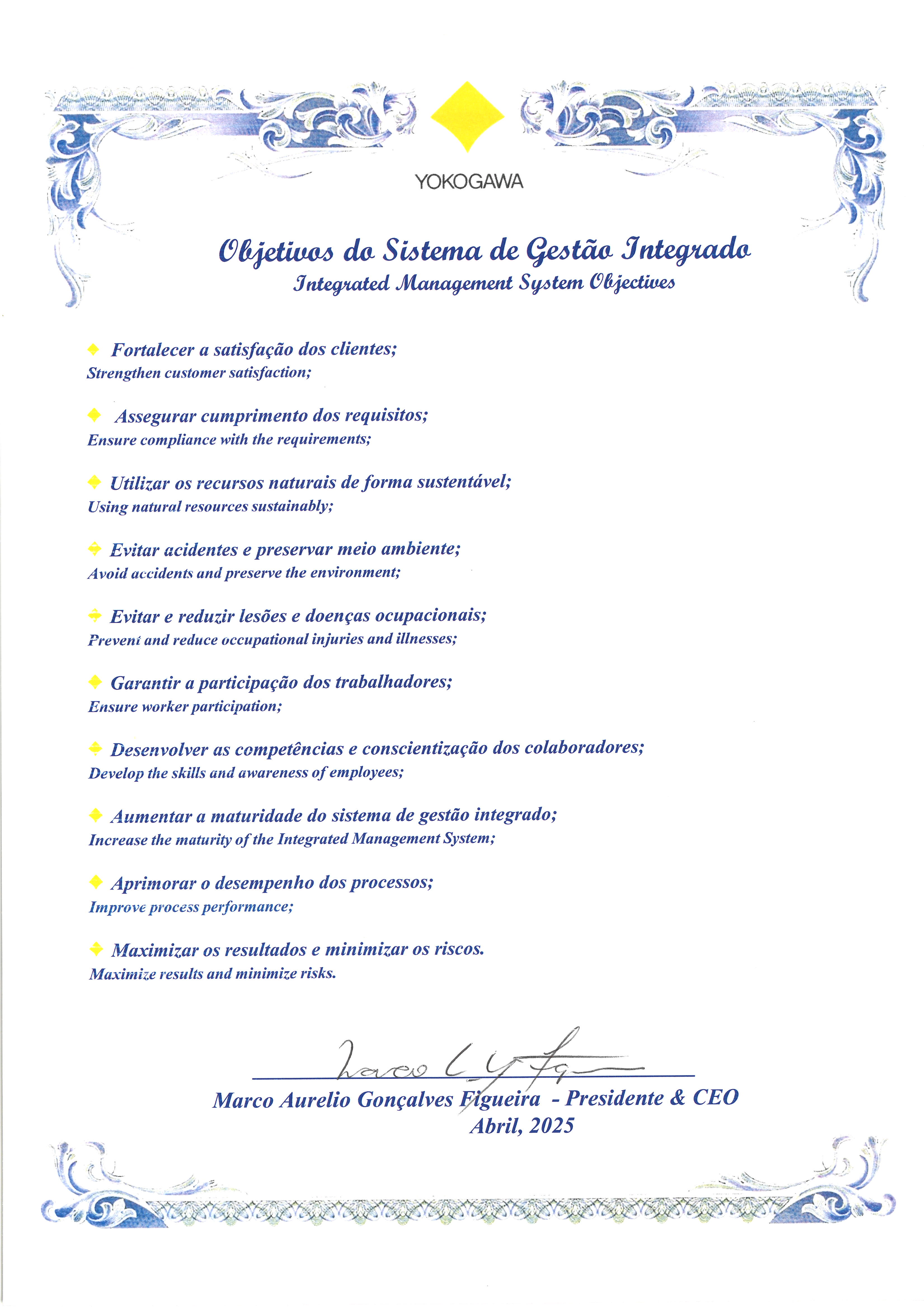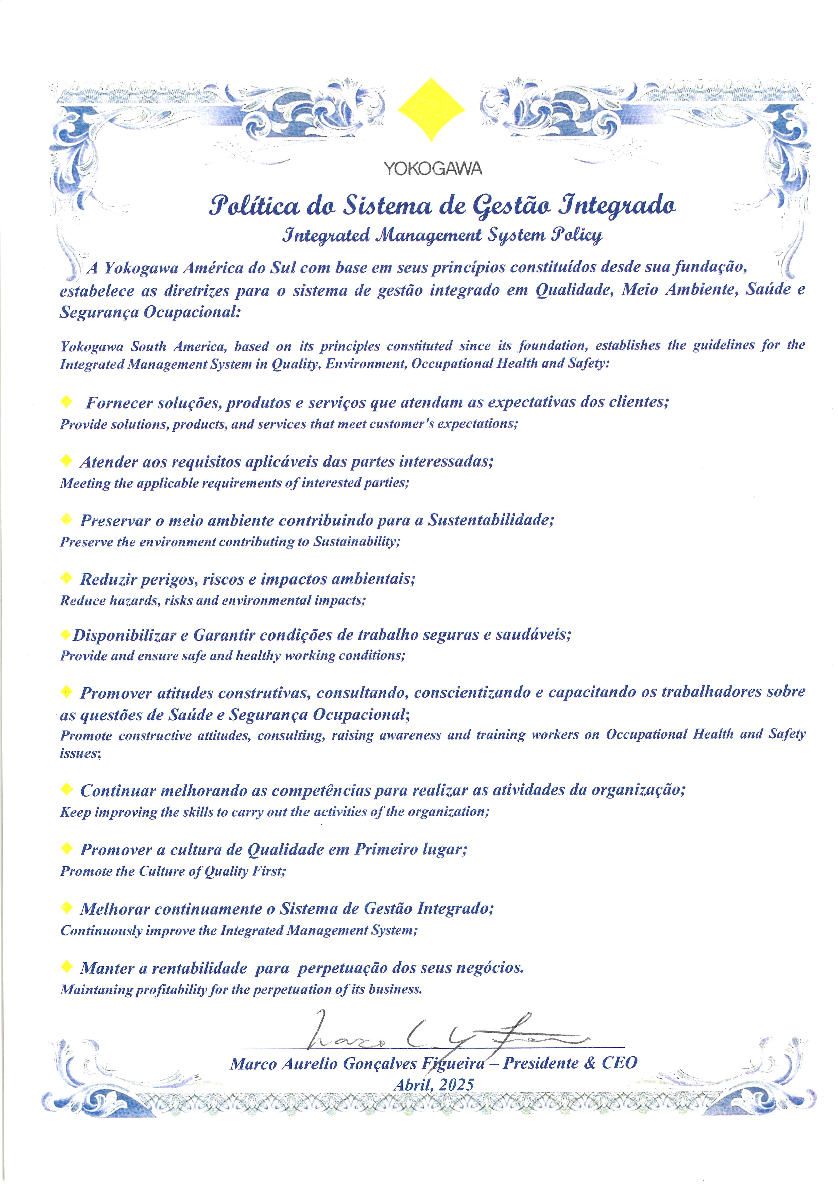 A Yokogawa South America com base em seus princípios constituídos desde sua fundação, estabelece as diretrizes para o sistema de gestão da qualidade: