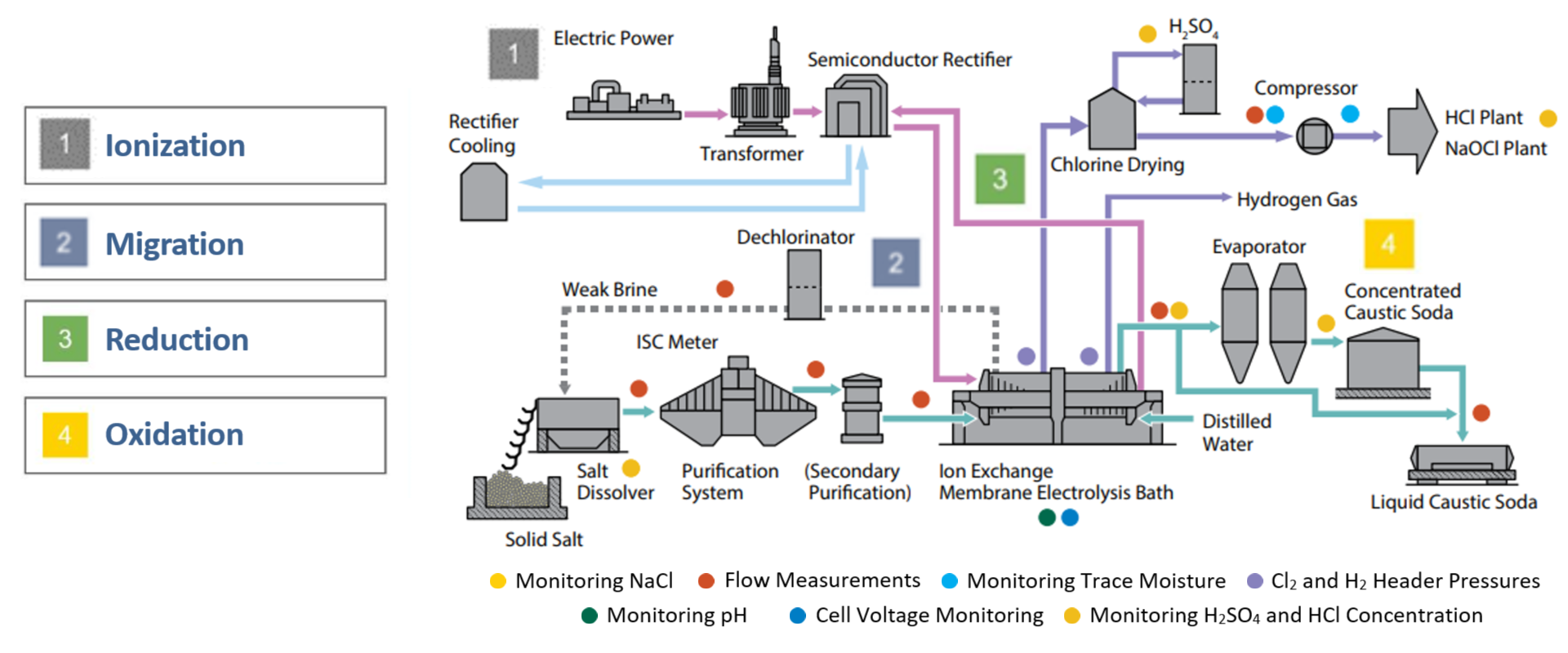 Yokogawa helps manufacturers of chlor-alkali products such as chlorine, and sodium hydroxide, through the electrolysis of sodium chloride use automation solutions that enable plant-wide integration and lifecycle optimization. Here is a quick list of applications for which Yokogawa has a global network of experts at your service, providing comprehensive automation solutions for the chlor-alkali process to produce 3 main chemicals: chlorine, caustic soda and caustic potash.