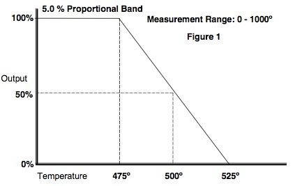 Refer to Figure 1 below. This example of a temperature controller shows a proportional band setting of 5%.