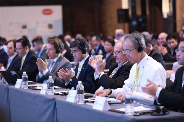 横河电机株式会社总裁及首席执政官西岛刚志先生、横河电机株式会社董事及执行副总黑须聪先生、横河电机株式会社副总裁兼亚太(及中国)首席执政官戴煜博士先后介绍了横河电机的过程工业智能制造解决方案。其中着重介绍了横河电机推出的新工业自动化与控制业务理念——“Synaptic Business Automation”。