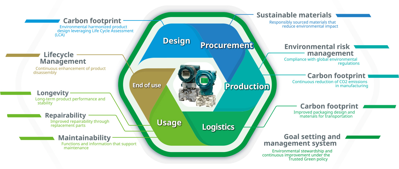 Based on YOKOGAWA "Trusted Green" sustainability guidelines for the product lifecycle, we strive to ensure the sustainable and stable operation of our customers' plants with our differential pressure transmitters.