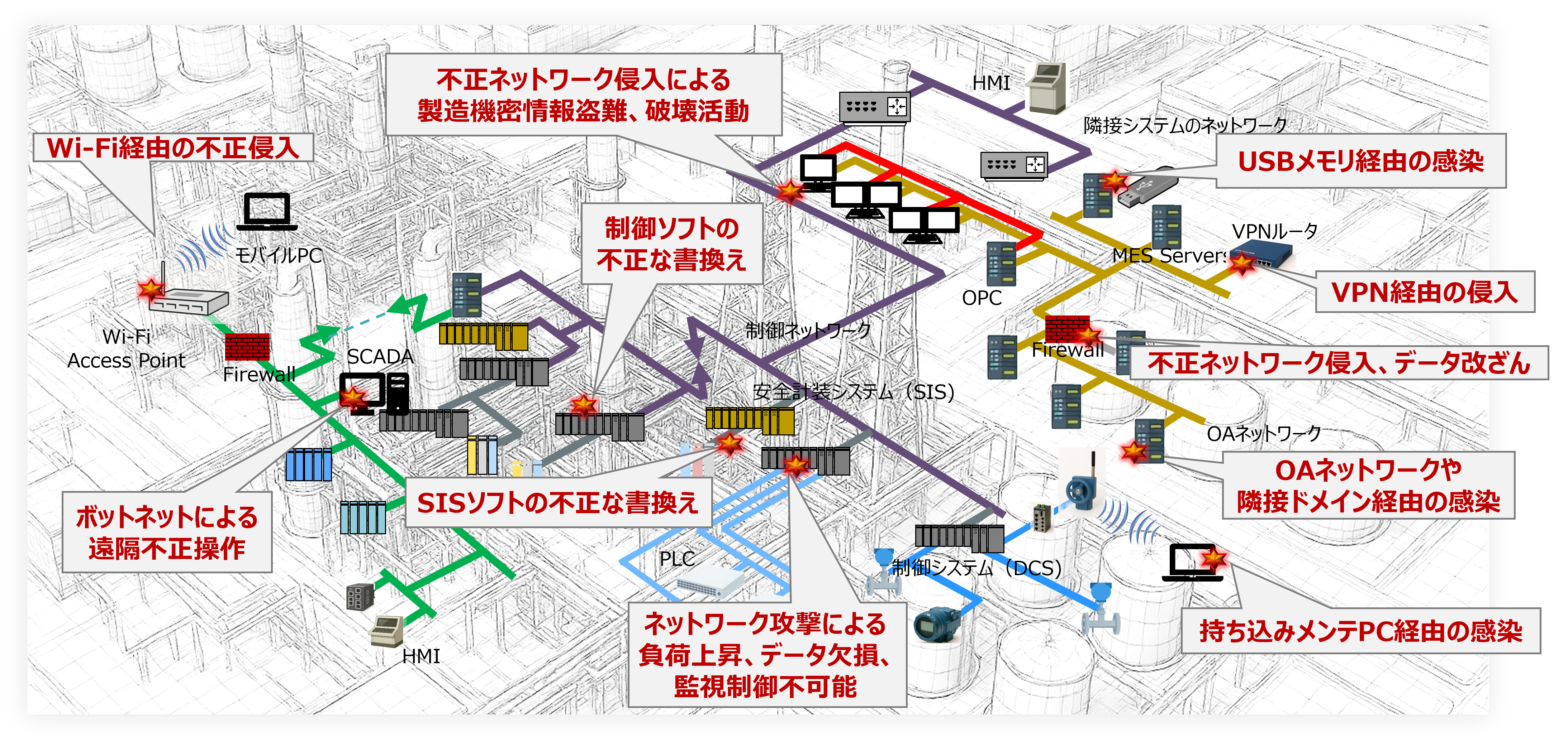製造現場や社会インフラでは、デジタル化の進展に伴い、運転を止めることができないOT(Operational Technology)環境におけるセキュリティ対策の重要性が一層高まっています。こうした状況に対応するため、横河デジタルは高度なネットワーク技術を活用し、現場の安全で安心な操業を力強く支援します。