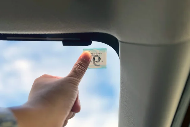 🔹 車のフロントガラスに貼られたステッカーは、車検に合格した証となります。
