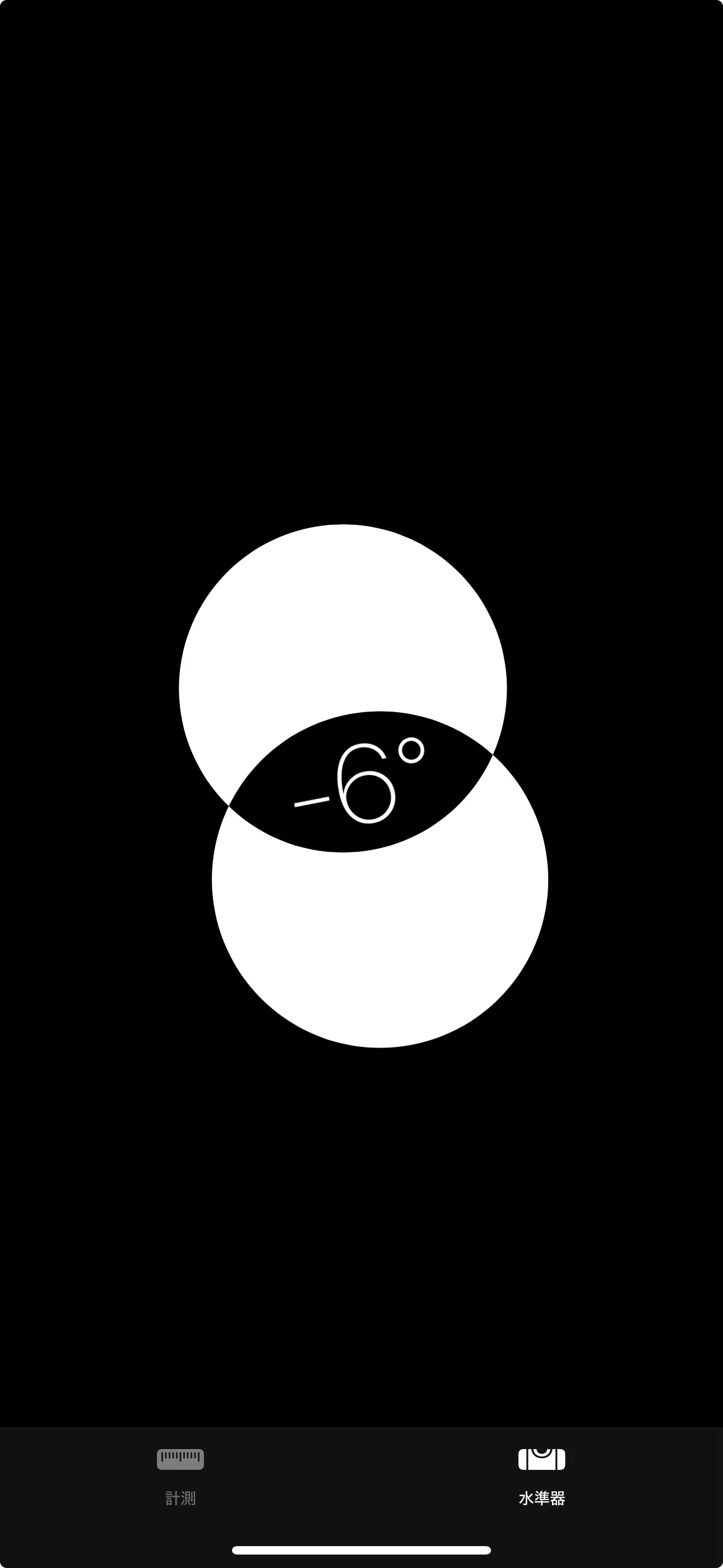 - なお、私のスマートフォン(iPhone)の計測アプリには「 計測(長さ) 」と「 水準器(角度) 」の2つの機能があり、切り替えて測定できるようになっています。
