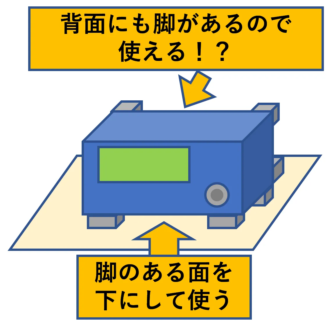 - 新人:計測器に脚が2面(底面と背面)についている場合、どう置いて使うべきでしょうか?
