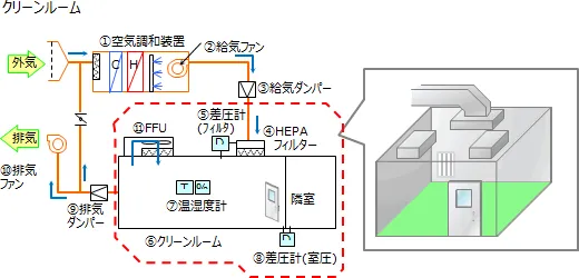 1.クリーンルームの評価(性能)を実現している機器の構成(仕組み)