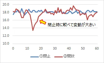 同じ運転条件でも開口部の閉止・開放により差圧の値は色々
