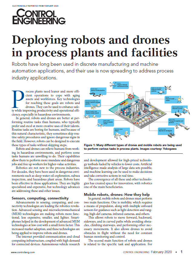 Robots have long been used in discrete manufacturing and machine automation applications, and their use is now spreading to address process industry applications.