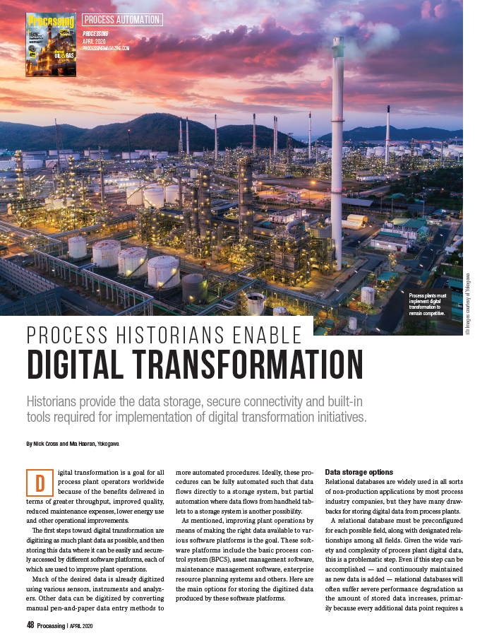 Historians provide the data storage, secure connectivity and built-in tools required for implementation of digital transformation initiatives.