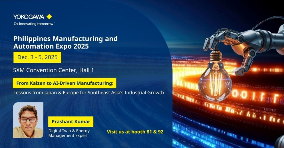 Yokogawa Philippines, Inc. will be exhibiting and speaking at the Philippines Manufacturing & Automation Expo (PMAX) 2025. Co – Located with Philippines Electronics Manufacturing Expo (EMAX), PMAX brings forth the latest innovations and technologies in manufacturing to the Philippines. This premier event serves as a vital platform for global suppliers aiming to meet the burgeoning industrial needs of the nation.