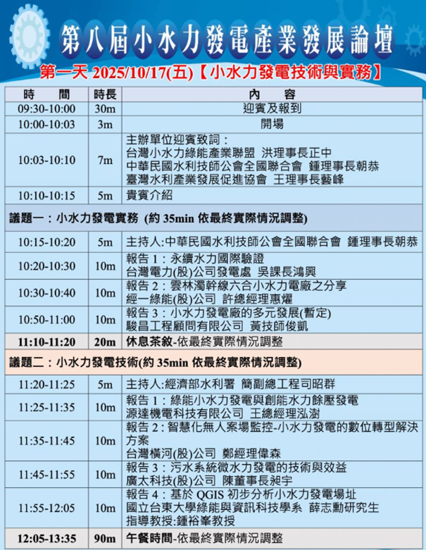 面對氣候變遷挑戰,全球已進入淨零轉型時代。台灣於2022年宣示將於2050年達成淨零排放目標。為推動台灣小水力發電發展,深化綠能韌性與地方永續,台灣小水力綠能產業聯盟將與中華民國水利技師公會聯合會及臺灣水利產業發展促進協會共同主辦「第八屆小水力發電產業發展論壇」,主題為「強化綠電韌性,推進小水力加值轉型」。