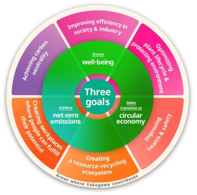 Yokogawa has established the “Three goals” in achieving a sustainable society by the year 2050, together with a transformation of our own business and practices.