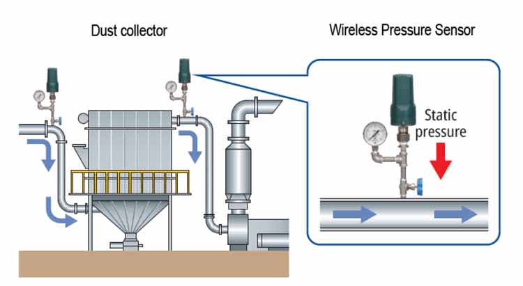 Figure 3: Yokogawa’s Sushi Sensor can provide a pressure measurement via LoRaWAN at the outlet of a bag house to indicate if it is clogged, or leaking due to torn bags.