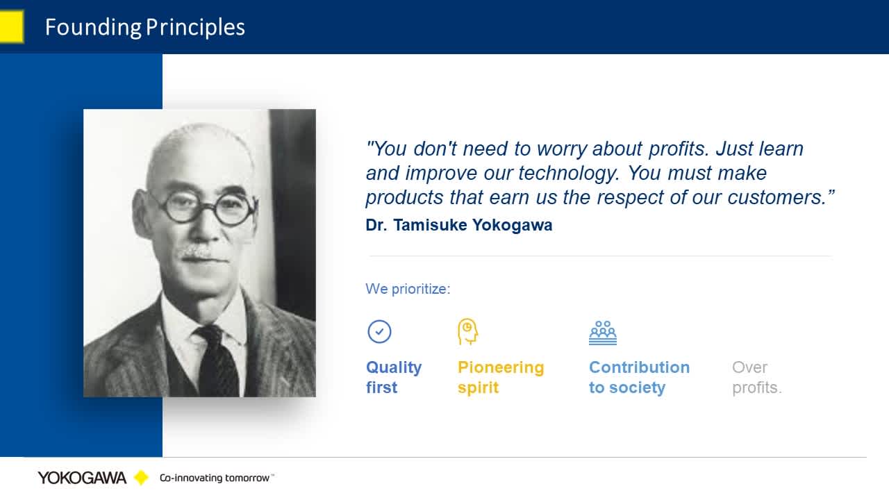 For more than a century, Yokogawa has remained a leader in technology and innovation. Accolades include many “world firsts” including the development of Japan's first electronic recorder (1950), the introduction of the world’s first distributed control system – CENTUM (1975), and being the main automation contractor for Shell’s Holland Hydrogen I plant in Rotterdam (2022) - just to name a few. It is with this rich history powering us forward that we remain intensely focused on increased sustainability, developing innovative technology solutions, and delivering customer-centric service at every engagement.