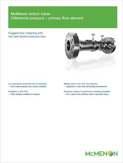 The McMenon Venturi Tube delivers precise flow measurement with minimal permanent pressure loss. Their streamlined profile eliminates turbulence and protects against wear, making them ideal for corrosive or high-pressure services.
