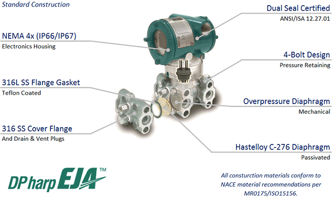 Harsh environments can reduce the life of your instrumentation, causing maintenance issues and plant downtime. Yokogawa’s ruggedly constructed pressure transmitters feature a four-bolt pressure retaining design, Teflon® coated 316L stainless steel flange gasket, and a dual seal certified to ANSI/ISA 12.27.01. These design features extend the life of your transmitter, increasing plant availability.